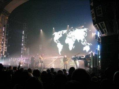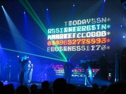 Throughout the performance a huge screen on which Matrix-style numbers scroll